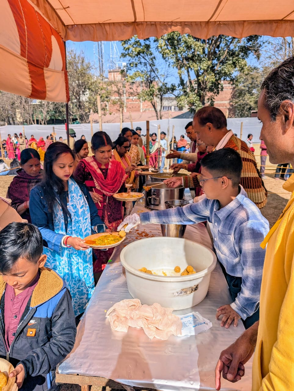 दोपहर 12 बजे से शुरू हुए भण्डारे में आश्रम परिसर के बाहर से लेकर भीतर के विशाल मैदान तक लंबी कतारें देखने को मिलीं। वाईएसएस के स्वयंसेवकों ने श्रद्धा और सेवा भाव से खिचड़ी, चटनी और लड्डू का प्रसाद परोसा।